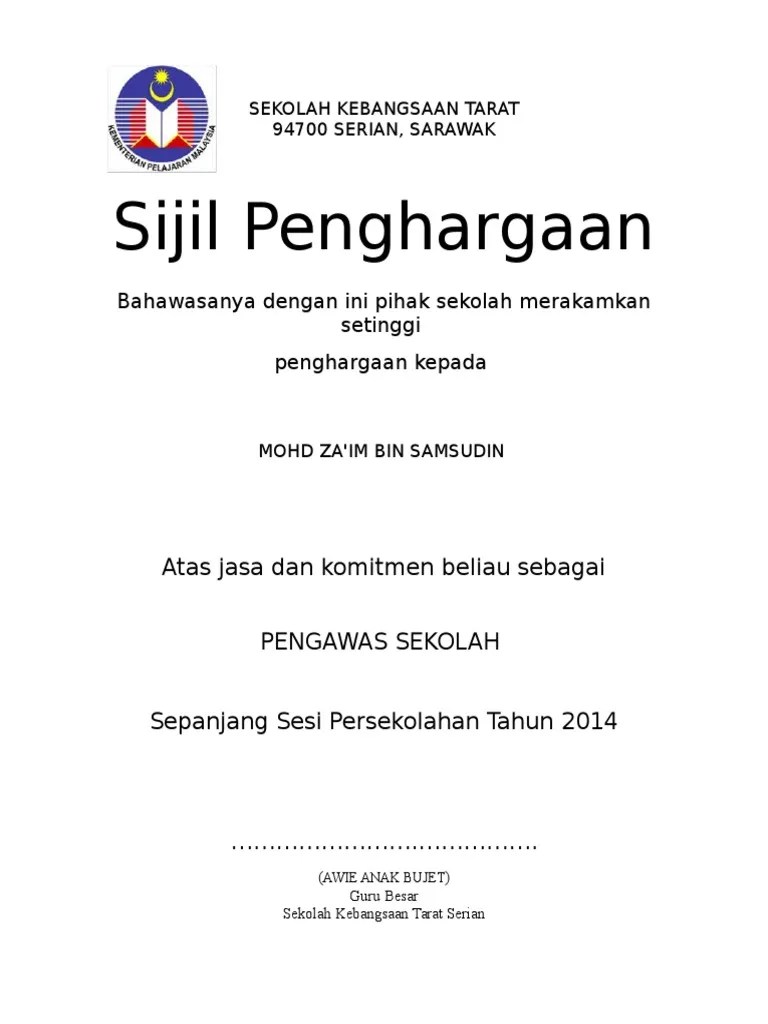 Majlis pelantikan ajk tertinggi pengawas 2019 2020. Sekolah kebangsaan cenderawasih · 25200 kuantan pahang. Atas sumbangan dan khidmat bakti sebagai. Kerana telah menjalankan tugas dengan jayanya sebagai · tuan . Sijil penghargaan atas pencapaian cemerlang 100 kpi . Nur fatin qistina farisha binti faizal. Sijil penghargaan dengan setulus ikhlas merakamkan setinggi penghargaan kepada muhammad izuan bin ibrahim… sekolah kebangsaan danan 16810 pasir puteh, kelantan. Sekolah jenis kebangsaan tamil ladang mayfield 13300 tasek gelugor, pulau pinang sijil penghargaan dengan ini. ( puan p.suthmothy ) guru besar sjkt ladang . Sijil penghargaan atas pencapaian cemerlang 100 kpi hrmis tahun 2018 portal . Sijil penghargaan · nur amiera asha bt ameran. Penghargaan dan ucapan terima kasih kepada.